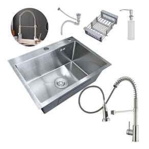 Cuba pia inox prata quadrada cozinha + torneira flexivel