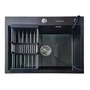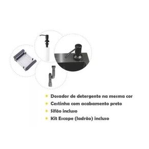 Especificações técnicas Marca: brinovar Material: aço inoxidável 201 Cor: preto Acabamento: escovado acetinado Modelo: 60x45cm Formato: retangular Medidas total da cuba: 60 c x 45 l x 21,5 a cm Medida interna da cuba: 55 c x 35 l x 21 a cm Espessura: 3mm Capacidade total: 40 litros Indicação: cozinha, espaços gourmet, ilhas e churrasqueiras Aplicação: embutir ou sobrepor Diâmetro furo para torneira: 35mm posição central Diâmetro furo para dispenser: 28mm lado direito Furo para válvula: 4 1 2 '' Posição da válvula: centralizada Aceita triturador: sim Acompanha acessórios: sim Válvula escape - ladrão: sim Capacidade do dispenser detergente: 300ml Escorredor extensível: medida aberto 45x21,5 e medida fechado 28x21,5cm Sifão: sim Anti-ruído: sim, pintura externa e aplicação da manta no fundo e laterais Garantia: 90 dias