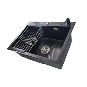 Kit cuba pia aço inox quadrada cozinha + torneira flexivel preta brinovar Especificações técnicas Marca: brinovar Material: aço inoxidável 201 Cor: preto Acabamento: escovado acetinado Modelo: 60x45cm Formato: retangular Medidas total da cuba: 60 c x 45 l x 21,5 a cm Medida interna da cuba: 55 c x 35 l x 21 a cm Espessura: 3mm Capacidade total: 40 litros Indicação: cozinha, espaços gourmet, ilhas e churrasqueiras Aplicação: embutir ou sobrepor Diâmetro furo para torneira: 35mm posição central Diâmetro furo para dispenser: 28mm lado direito Furo para válvula: 4 1 2 '' Posição da válvula: centralizada Aceita triturador: sim Acompanha acessórios: sim Válvula escape - ladrão: sim Capacidade do dispenser detergente: 300ml Escorredor extensível: medida aberto 45x21,5 e medida fechado 28x21,5cm Sifão: sim Anti-ruído: sim, pintura externa e aplicação da manta no fundo e laterais : 90 dias Torneira gourmet extensível preta brinovar Especificações técnicas: Marca: brinovar Cor: preto Acabamento: fosco Material: aço inox 304 Aplicação: bancada - pia - cuba Instalação: cozinha - espaços gourmet - ilhas - churrasqueiras Sistema: monocomando Bica: giratória, rotação 360 graus Jato de água: arejador com opcional acionamento de ducha gourmet através do botão Comprimento: 24 cm Largura: 4,7 cm Altura: 49 cm Tamanho máximo da mangueira extensora: 50cm Cartucho: cartucho cerâmico de alta durabilidade 500.000 ciclos Temperatura mínima da água: 5celcius Temperatura máxima da água: 75celcius Utilização somente com água fria: sim, necessário a utilização de adaptador 't' não incluso Aquecedor compatível com a torneira: elétrico, solar e gás não incluso Pressão mínima da água: 3mca metros de coluna dágua Pressão máxima da água: 40mca metros de coluna dágua Pressão ideal da água: acima de 5mca metros de coluna dágua Perfuração da bancada: 3,5 cm Rosca: 3 cm : 90 dias Cuidados: Não use palha de aço, produtos químicos, não usar ácido muriático, água sanitária ou qualquer outro solvente para a limpeza. Limpe periodicamente o seu produto apenas com um pano macio, água e sabão neutro. Para manter o brilho do seu produto recomendamos o uso da pasta para polir e remover manchas em superfícies de aço inoxidável. Itens inclusos Torneira monocomando extensível Mangueira flexível de aço trançado 50cm para ligação de água quente e fria Sistema de fixação Anéis de vedação Cuba brinovar projetada para aplicação sobreposta ou embutida Dosador de sabão de 300ml com sistema recarrega fácil. Não é necessário retirar o reservatório para reabastecê-lo. Válvula 4 1 2 '' totalmente compatíveis com o uso de trituradores elétricos Válvula e tubulação do ladrão Cesto escorredor extensível Sifão Marca: Não Informado