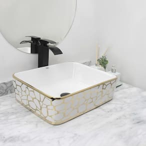 Tipo de Cuba : Cuba retangular em cerâmica de altíssima qualidade e durabilidade. Acabamento Construção e Acabamento : Esmaltado Tonalidade : Branco Cor : Branco com detalhes dourado Tecnologia : Smart Norte Peso kg : 10 Altura cm : 13 Largura cm : 38 Comprimento cm : 48