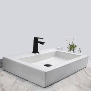 Kit Cuba Pia Louça Cerâmica Banheiro C/ Torn e Vál Preta S07