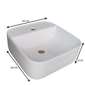 Medidas da cuba:(A) 14 cm (L) 38,5 cm (C) 38,5 cm