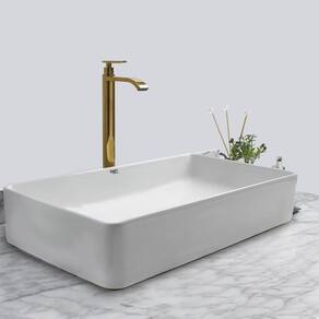 Kit Cuba Pia Louça Cerâmica Banheiro Com Torn E Vál Dourada 2 Decore seu banheiro com este kit de sobrepor contendo cuba, torneira e válvula que não é apenas uma tendência no mundo do desenho, mas também lhe dará espaço suficiente em seus lados para colocar itens de higiene pessoal.