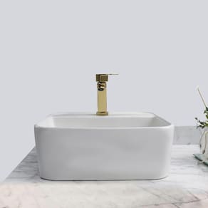 Kit Cuba Pia Louça Cerâmica Banheiro Com Torn E Vál Dourada 7 Decore seu banheiro com este kit de sobrepor contendo cuba, torneira e válvula que não é apenas uma tendência no mundo do desenho, mas também lhe dará espaço suficiente em seus lados para colocar itens de higiene pessoal.Sóbria e minimalistaAs linhas curvadas e simples de seu desenho , dará um toque moderno e minimalista a este importante espaço da sua casa.Durável e fácil de usarFeita em cerâmica legitima, este artefato oferece excelente qualidade e durabilidade, e também é uma oportunidade estética para decorar seu banheiro, ao qual trará personalidade e estilo.Medidas da cuba: A 14 cm L 38,5 cm C 38,5 cmMedidas da torneira: A 15 cm L 3,5 cm C 12 cmMedidas da Válvula: A 9 cm L 6,5 cm