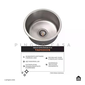 Para somar elegância e funcionalidade a outros espaços da casa, apresentamos a Cuba Inox Tamoio da Pingoo.casa. Com um diâmetro de 40cm, esta cuba redonda é versátil e compacta, adequando-se com maestria a espaços mais restritos, como cozinhas, áreas gourmet, churrasqueiras ou qualquer outro ambiente que seu projeto demandar.