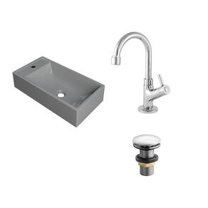 O Kit KTCARL545W.CZ.1198.V03 é uma combinação perfeita da Cuba de Apoio CARL545W.CZ com acessórios complementares, prontos para instalação no seu lavabo ou móvel de banheiro. Ele conta com 1 Cuba de Apoio Retangular Roma 54,5X28,6cm Cinza 1 Torneira de Mesa p/Lavatório SL1198 1/4 Volta Metal Cromado 1 Válvula P/Lavatório Click Up 1" (2,6cm) V03 Metal Cromado 0 0 0 , todos compatíveis e prontos para instalação. Acompanha Flexível: Não Acompanha Manual de Instalação: Sim Acompanha Sifão: Não Acompanha Torneira: Sim Altura: 12,7 cm Altura da Torneira: 19 cm Ambiente Principal: Banheiro Comprimento: 54,5 cm Cor: Cinza Cor do Produto: Cinza Diâmetro do furo: 32 mm Diâmetro para válvula: 40 mm Instruções de instalação: Média: pode ser montado por mais de uma pessoa e/ou necessite de maior conhecimento para montagem. Itens Inclusos: 1 Cuba de Apoio + 1 Torneira de mesa baixa + 1 Válvula de Escoamento Clik Up Largura: 28,6 cm Manual de Montagem e Instalação: https://product-hub-prd.madeiramadeira.com.br/888704/documents/46e69adf-29d5-491c-a225-4ec76841aee4AL20CUBAS2020COM20TORNEIRA.pdf Material da Torneira: Latão Material Principal: Mármore Sintético Origem do Produto: Nacional Peso: 6,71 kg Possui furação para torneira: Sim Possui ladrão: Não Pressão Máxima da Torneira: 40 mca Pressão Mínima da Torneira: 2 mca Recomendações de Uso, Manutenção e Limpeza: Utilize flanela seca ou pano macio, levemente umedecido com água. Evite contato com produtos químicos e abrasivos (solventes, thinner, acetona etc) e não utilize nenhum tipo de esponja de aço. Para maior brilho, recomendamos a utilização de cera automotiva n° 2. Tipo de Acionamento da Torneira: 1/4 de volta Válvula indicada: Válvula de escoamento