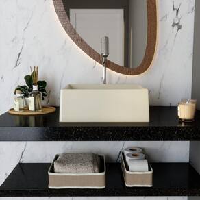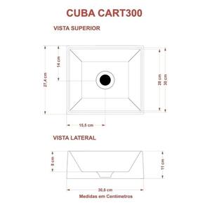 O Kit KTCART300W.BG.AP01 é uma combinação perfeita da Cuba de Apoio CART300W.BG com acessórios complementares, prontos para instalação no seu lavabo ou móvel de banheiro. Ele conta com 1 Cuba de Apoio Retangular Riviera 30,8cm Bege 1 Válvula P/Lavatório 1" (2,6cm) V01 Metal Cromado 1 Sifão Pvc Universal Branco 1 Engate Flexível Pvc Branco 40cm 0 0 , todos compatíveis e prontos para instalação. Acompanha Flexível: Sim Acompanha Manual de Instalação: Sim Acompanha Sifão: Sim Acompanha Torneira: Não Altura: 11 cm Ambiente Principal: Banheiro Comprimento: 30,8 cm Comprimento do Flexível: 40 cm Comprimento Máximo do Sifão: 71 cm Comprimento Mínimo do Sifão: 27 cm Cor: Bege Cor do Produto: Bege Diâmetro de Entrada do Sifão: 1.1/4 Polegadas Diâmetro de Saída do Sifão: 1.1/4 Polegadas Diâmetro do Flexível: 1/2 Polegada Diâmetro do furo: 32 mm Diâmetro para válvula: 40 mm Instruções de instalação: Média: pode ser montado por mais de uma pessoa e/ou necessite de maior conhecimento para montagem. Itens Inclusos: 1 Cuba de Apoio + 1 Válvula de Escoamento + 1 Sifão PVC Universal Branco + 1 Engate Flexível 40cm Largura: 27,4 cm Material do Flexível: PVC Material do Sifão: PVC Material Principal: Mármore Sintético Origem do Produto: Nacional Peso: 3,8 kg Possui furação para torneira: Sim Possui ladrão: Não Pressão Indicada do Flexível: Baixa Pressão Recomendações de Uso, Manutenção e Limpeza: Utilize flanela seca ou pano macio, levemente umedecido com água. Evite contato com produtos químicos e abrasivos (solventes, thinner, acetona etc) e não utilize nenhum tipo de esponja de aço. Para maior brilho, recomendamos a utilização de cera automotiva n° 2. Tipo de sifão: Flexível Torneira recomendada: Torneira de mesa alta Válvula indicada: Válvula de escoamento