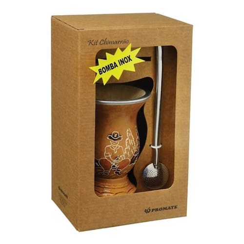 - cuia desenhada de porongo natural polida não utilizamos verniz no porongo - com bocal de alumínio e pé fixo - cano liso chato de 8,00 mm - bojo redondo - chupeta simples estampada no próprio cano - toda em aço inoxidável