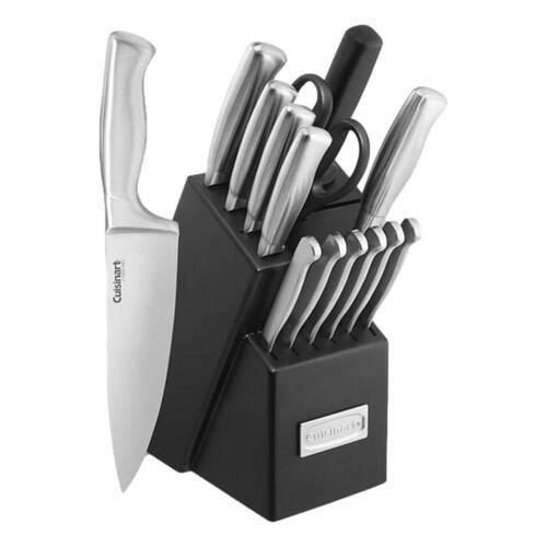Prepare-se para fatiar e aparar. Com este conjunto de facas de 15 peças, você pode equipar sua cozinha com lâminas e cabos de aço inoxidável fortes e duráveis. Do trabalho de preparação às refeições e recortes simples, essa equipe de corte pode lidar com qualquer tarefa. Este conjunto inclui:1 faca de chef de 8 20cm 1 faca de fatiar de 8 20cm 1 faca Santoku de 7 18 cm 1 faca serrilhada de 5,5 14 cm 1 faca de aparar de 3,5 8,9 cm 1 faca de aparar de bico de pássaro de 3,5 8,9 cm 1 lâmina de aço de afiar de 8 20 cm 1 tesoura doméstica multiuso1 bloco para acomodar todos os itensAço de qualidadeVariedade de novos estilos inovadores de facas e blocos permitem que os cozinheiros domésticos personalizem sua coleção de talheres.As facas são fabricadas com lâminas de aço inoxidável de alto carbono para precisão e exatidão.Design de qualidadeAs facas têm um reforço forte e durável para estabilidade e controle perfeitos.Alça de aço inoxidável com design ergonômico proporciona conforto e suporte.Importado dos EUA