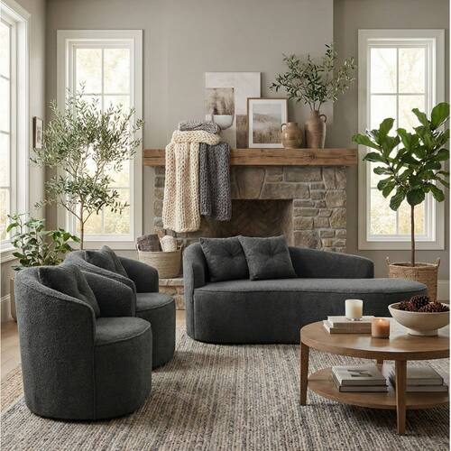 Estrutura em madeira, revestimento em bouclé.Vendido e entregue por COMERCIAL DE MOVEIS VIVIANE MONTANARI