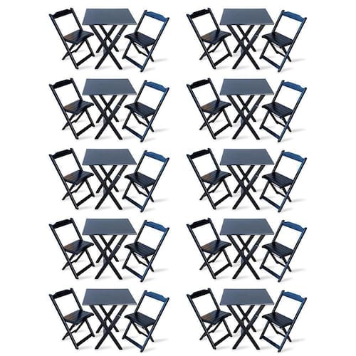Kit De 10 Conjuntos De Mesa Dobrável 60x60 Com 2 Cadeiras Preto - Cor: Preto