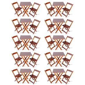 Kit De 10 Conjuntos De Mesa Dobrável 70x70 Com 2 Cadeiras Imbuia - Cor: Marrom