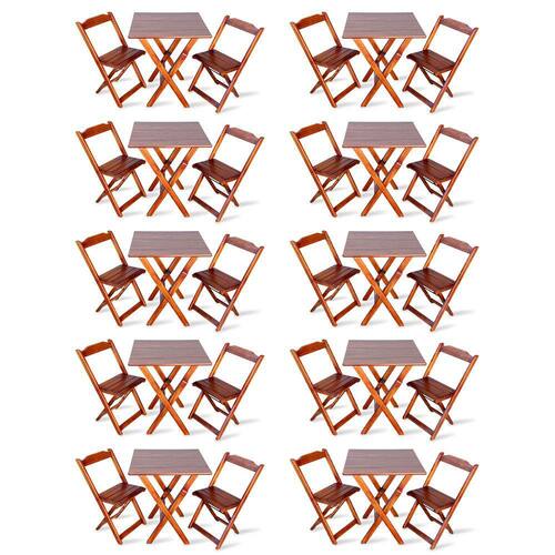 Kit De 10 Conjuntos De Mesa Dobrável 70x70 Com 2 Cadeiras Imbuia - Tarimatãé ideal para bares, restaurantes, estabelecimentos, áreas de lazer e tambem para sua casa. Em madeira maciça, tornando-os resistentes e duráveis. Seu design permite que esse conjunto seja encaixado em qualquer ambiente, trazendo um toque a mais para seu estabelecimento. Além de sua durabilidade, o que lhe trará conforto para servir seus clientes. Por ser dobrável torna-se mais fácil guardar, manusear e limpar o produto.Atenção: EVITE USAR PRODUTOS ABRASIVOS E QUÍMICOS PARA LIMPEZA DO PRODUTO, aconselha-se o uso de pano umedecido para melhor conservação mantenha o produto fora de chuva e sol constantes.*imagens meramente ilustrativas*Dimensões Mesa:Tampo 67,3 x 67,3 cmAltura 77cmDimensões Cadedeira:Altura da cadeira aberta 78cmAltura da cadeira fechada 89cmAltura até o assento 46cmLargura 41,5cmLargura vão do assento 37,5cmProfundidade 40cmProfundidade do assento 32cm Marca: TARIMATA