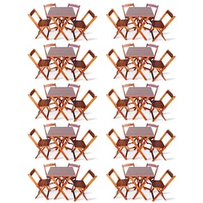 Kit De 10 Conjuntos De Mesa Dobrável 70x70 Com 4 Cadeiras Imbuia - Tarimatãé ideal para bares, restaurantes, estabelecimentos, áreas de lazer e tambem para sua casa. Em madeira maciça, tornando-os resistentes e duráveis. Seu design permite que esse conjunto seja encaixado em qualquer ambiente, trazendo um toque a mais para seu estabelecimento. Além de sua durabilidade, o que lhe trará conforto para servir seus clientes. Por ser dobrável torna-se mais fácil guardar, manusear e limpar o produto.Atenção: EVITE USAR PRODUTOS ABRASIVOS E QUÍMICOS PARA LIMPEZA DO PRODUTO, aconselha-se o uso de pano umedecido para melhor conservação mantenha o produto fora de chuva e sol constantes.*imagens meramente ilustrativas* Marca: TARIMATA
