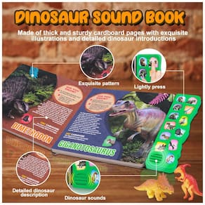 O audiolivro é divertido e educativo, permitindo que as crianças aprendam sobre os dinossauros pressionando o botão de som para ouvir os nomes dos dinossauros antes de ouvir seus rugidos realistas. O livro também tem jogos que estimularão a criatividade e a imaginação das crianças.