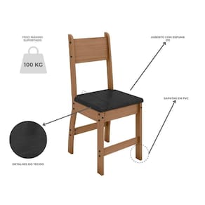 Marca: Poliman Móveis | Modelo: Cadeira Milano com Tecido Sintético | Altura: 92 cm | Largura: 41 cm | Profundidade: 39 cm | Altura Embalagem: 7,5 | Largura Embalagem: 38,8 | Profundidade Embalagem: 95,4 | Peso: 11,8 kg | Peso Embalagem: 11,8 | Material: MDF/MDP de 15 mm e 18 mm, encosto em MDP de 15 mm, Assento em MDP de 20 mm, espuma D11 revestido com material sintético | Tonalidade: Multicolorido | Cômodo Indicado: Salas | Descrição do tamanho: 92 x 41 x 39 cm | Estado de origem: SP | Garantia em meses: 03 meses de garantia para defeitos de fabricação | Precisa de montagem?: Sim | É empilhável: Não | Profundidade do assento: 39 cm | É dobrável: Não | Condição do item: | Profundidade da cadeira: 39 cm | Fonte do produto: Loja DoceLar | Peso máximo suportado: 100 kg | Material dos pés: MDF com sapatas | Quantidade de cadeiras por conjunto: 2 | Material do assento: assento em MDP de 20 mm, espuma D11 revestido de tecido sintético | Incluí estofamento: Sim | Espessura do assento: D11 | Materiais da estrutura: MDF e MDP de 15 mm, MDF e MDP de 18 mm | É cadeira de balanço: Não | É cadeira para exterior: Não | Largura do assento: 41 cm | Desenho do tecido: N/A | Material do estofamento: espuma D11 revestido com tecido sintético | Com assento almofado: Sim | Altura da cadeira: 92 cm | Enchimento do estofamento: espuma D11 | Desenho da cadeira: N/A | Altura do assento a partir do solo: 47 cm | Fabricante: Poliman Móveis | Largura da cadeira: 41 cm | É kit: Não | Estilo: Moderno | Firmeza: D11 | Código de homologação ANATEL: Não se aplica | Precisa de baterias ou pilhas (areBatteriesRequired): Não | Regulamentações aplicáveis a produtos perigosos (supplierDeclaredDGHZRegulation): Não se aplica Cor: Carvalho/Preto