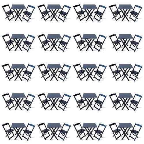 Kit De 20 Conjuntos De Mesa Dobrável 60x60 Com 2 Cadeiras Preto - Tarimatãé ideal para bares, restaurantes, estabelecimentos, áreas de lazer e tambem para sua casa. Em madeira maciça, tornando-os resistentes e duráveis. Seu design permite que esse conjunto seja encaixado em qualquer ambiente, trazendo um toque a mais para seu estabelecimento. Além de sua durabilidade, o que lhe trará conforto para servir seus clientes. Por ser dobrável torna-se mais fácil guardar, manusear e limpar o produto.Atenção: EVITE USAR PRODUTOS ABRASIVOS E QUÍMICOS PARA LIMPEZA DO PRODUTO, aconselha-se o uso de pano umedecido para melhor conservação mantenha o produto fora de chuva e sol constantes.*imagens meramente ilustrativas*Dimensões Mesa:Tampo 58x60 cmAltura 77cmDimensões Cadedeira:Altura da cadeira aberta 78cmAltura da cadeira fechada 89cmAltura até o assento 46cmLargura 41,5cmLargura vão do assento 37,5cmProfundidade 40cmProfundidade do assento 32cmKit de 20 Conjuntos de Mesa DobrÃvel 60x60 com 2 Cadeiras Preto - TarimatÃ