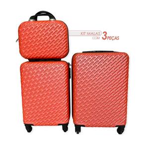 Kit De 3 Malas De Viagem Salmão Kit com 3 Malas de Viagem Esse conjunto de malas é o que estava faltando para organizar sua viagem em família. Com seu exterior em material resistente e durável e um interior espaçoso, esse kit de malas vai suprir qualquer necessidade, seja para viagens com pouca bagagem ou viagens que necessitam de mais espaço. O kit é composto por duas malas de rodinhas giratórias a 360º, sendo uma no tamanho M e outra P. Além de vir com uma mala de mãos espaçosa com capacidade de litros. Tem carrinho de alumínio com alça telescópica com 3 posições, permite que você adapte a alça a suas necessidades. no interior das malas possui divisórias com zíper e cinta elástica, para manter a organização dos itens que serão transportados. Para a segurança dos pertences, cada mala de viagem contém um cadeado fixo para travar os puxadores do zíper, crie sua combinação de números e mantenha sua mala mais segura. especificações:material: ABSDimensões: Mala M: 38cm Largura x 55cm Altura x 22cm Profundidade / Mala P: 33cm Largura x 51cm Altura x 20cm Profundidade / Mala de mão: 27cm Largura x 35cm Altura x 16cm ProfundidadePolegadas: Mala M: 20 / Mala P:18 / Mala de mãos: 14Capacidade: Mala M:15kg / Mala P: 12kg / Mala de mão: 8kgPeso: Mala M: 2,5kg Mala P: 2,2kg Mala de mãos: 1kgCor: Salmão Ean: 7908161742421