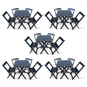 Kit De 5 Conjuntos De Mesa Dobrável 60x60 Com 4 Cadeiras Preto - Cor: Preto