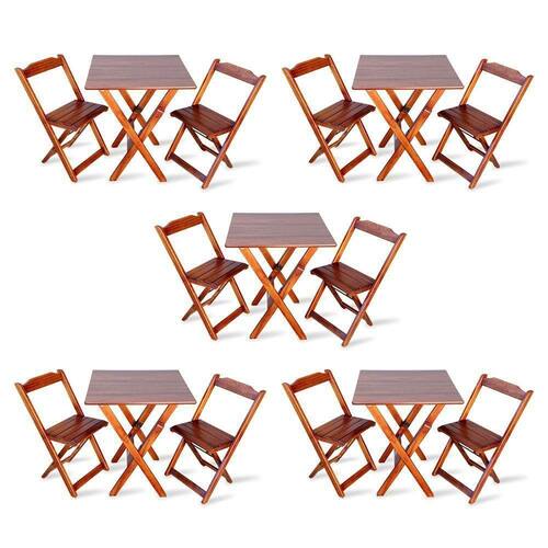 Kit De 5 Conjuntos De Mesa Dobrável 70x70 Com 2 Cadeiras Imbuia - Cor: Marrom
