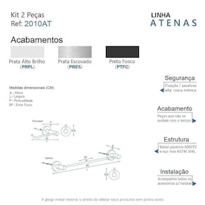 O kit acessórios de banheiro da linha Atenas possui um design retrô, são peças que se destacam com luxo e elegãncia. Além de decorar, organiza com funcionalidade o banheiro. Criado em metais nobres com uma qualidade que abrange áreas litorâneas e possui a de um acabamento muito resistente. Agora é só você adquirir estes lindos acessórios e fazer o seu projeto se tornar realidade com um banheiro prático para toda a sua família. Características Fabricado em metal aço inox e alumínio. Disponível no Prata Alto Brilho, Escovado e Preto Fosco. Pode ser instalado em parede, azulejo e porcelanato. Benefícios Fixação prática e segura com parafusos e buchas inclusos. O produto não possui nenhum detalhe em plástico ABS . Fácil higienização, ideal para locais que exigem limpeza constante. Aproveitamento inteligente do espaço, ideal para ambientes compactos. Resistente à corrosão e luz solar. Itens ENVIADOS: 1 porta papel higiênico, 1 toalheiro 45cm, kit de parafusos e manual instrução instalação. Instalação INTELIGENTE Ao 1º furo, use uma broca medida menor, após use a medida correta e finalize, vai ajudar na precisão da fixação da bucha principalmente em azulejos e porcelanato. Marca: Não Informado