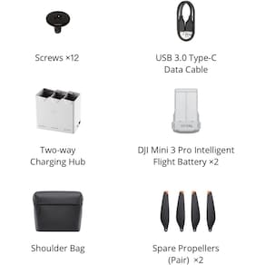 Acessórios genuínos DJI Mini 3, o kit inclui duas baterias de voo inteligentes (tempo máximo de voo de 34 minutos), um hub de carregamento bidirecional, bolsa de ombro e muito mais.