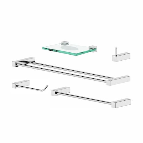 - 2090tr - 5 pçs (01 Cabide, 01 Papeleira, 01 Porta Toalha 30cm, 01 Porta Toalha Duplo 60cm, 01 Saboneteira)