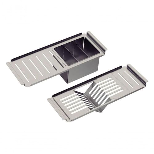 Você vai ter uma experiência especial na cozinha com o Kit de acessórios Tramontina em Aço Inox com Acabamento Scotch Brite da linha Tramontina Design Collection. Os acessórios auxiliam você nas tarefas diárias e ainda dão um toque cheio de estilo para sua cozinha, conta com escorredor de pratos, escorredor de talheres e escorredor de copos. O kit é projetado para uso uso exclusivo nas Cubas Quadrum Tramontina.