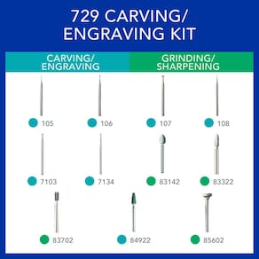 Kit de acessórios para ferramentas rotativas de escultura e gravação Dremel 729-01 de 11 peças - Inclui brocas de gravação e pedras de amolar - Ideal para madeira, metal e vidro