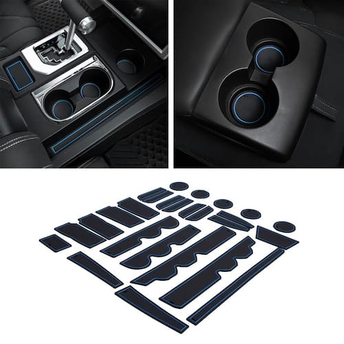 ?Ajuste perfeito?Estes tapetes de inserção Tundra são projetados e produzidos especificamente para Tundra 2014 2015 2016 2017 2018 2019 2020 2021 Tundra com assentos concha (configuração de 5 passageiros), incluindo o Crew Max, SR5, edição 1794, Platinum ou TRD Pro. em qualquer cabine dupla ou limitado (apenas 5 assentos de assento de passageiros!) IMPORTANTE: Para iniciar sua instalação, recomendamos simplesmente usar um pano úmido para remover migalhas e derramamentos anteriores. - ?Ajuste perfeito?Estes tapetes de inserção Tundra são projetados e produzidos especificamente para Tundra 2014 2015 2016 2017 2018 2019 2020 2021 Tundra com assentos concha (configuração de 5 passageiros), incluindo o Crew Max, SR5, edição 1794, Platinum ou TRD Pro. em qualquer cabine dupla ou limitado (apenas 5 assentos de assento de passageiros!) IMPORTANTE: Para iniciar sua instalação, recomendamos simplesmente usar um pano úmido para remover migalhas e derramamentos anteriores. - ?Proteja sua tundra?Estes acessórios de forro Tundra alinham com precisão e completamente o console interno, bolsos para porta do carro e suporte de copo dando "proteção interior absoluta"! Medições digitais a laser de superfícies internas oferecem um ajuste consistentemente perfeito! - ?Antiderrapante e redução de ruído?O design de textura nas almofadas de borracha pode evitar que o item aleatório escorregue e chacoalhe. Os kits de forro de tundra são feitos para durar e têm moldura costurada de alta qualidade para garantir que não desfia ou se desfaça como outras almofadas. Você pode lavá-los na pia. - ?Melhore a aparência interna?Atualize a aparência interior da sua tundra para combinar com o estilo interior da tundra. Oferece um estilo de decoração de alta classe e moda para sua Tundra 2014-2021, mude o design interior comum da Tundra e adicione cores exclusivas ao seu caminhão, tornando-o de alta classe, exclusivo e diferente de qualquer outro, pode cobrir arranhões existentes e evitar que você Tundra do dedo unhas, arranhões, etc. - ?INSTALAR EM UM FLASH?Instale diretamente, não é necessário modificar. Adicione um toque legal de cor à sua nova Tundra.