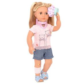 Cada acessório ajuda suas melhores amigas a se recuperarem, um passo de cada vez. Use a perna engessada e a gola rosa para dar às suas bonecas uma recuperação rápida. Eles cabem facilmente em todas as bonecas Our Generation, para que você possa cuidar especialmente de todos as suas amigas, independentemente da lesão! Traga suas bonecas pela vizinhança com as muletas envolvendo as alças em seus braços e use o rolo de fita adesiva para proteger o tornozelo de outras pequenas lesões!