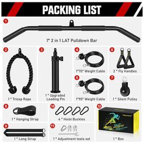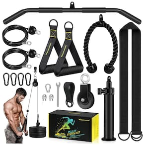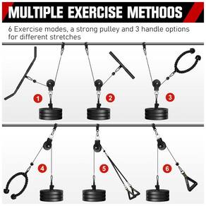 Equipamento de exercício de corpo inteiro perfeito Projetamos os mais recentes acessórios de ginástica com sistema de polias após pesquisa de e comunicação com especialistas em fitness. Alterando as formas de conexão entre a fivela da talha e o cabo de liga de alta resistência, você pode obter vários métodos de exercícios funcionais Bíceps Curl, Triceps Pull Down, Lat Pull Down, Row, Fly etc. construindo seu núcleo. Faça com que você possa sentir claramente o músculo se desenvolvendo após cada alongamento. Três alças destacáveis Fornecemos 3 alças destacáveis, permitindo que você altere livremente o anexo desejado Corda de tríceps usada para empurrar tríceps para baixo, flexão de bíceps e movimentos de várias linhas. Alças do tipo favo de mel podem exercitar os músculos do peito por expansão e aperto do peito, melhor antiderrapante para ajudá lo a se exercitar com mais eficácia. Barra de tração LAT usada para treinamento de pull up, pull down, exercício de força de pulso e antebraço. Material profissional e premium O pino de carregamento atualizado é feito de aço espesso, equipado com uma manga de tubo destacável de para encaixar nas placas de peso olímpicas e padrão, cargas máximas de peso de até 280 lb a esponja aumentada inferior para garantir que seu piso não seja danificado. polia silenciosa de mesa rotativa de 360 , garante operação silenciosa e estável do sistema de polia Vem com dois tamanhos 70 e 90 de cabo de alto nível e acessórios de ajuste para atender às suas várias formas de exercício Marca: Não Informado