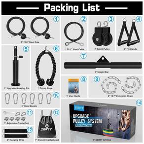 Kit de valor atualizado e mais opções de exercícios O kit SERTT Lat Pulley System tem 2 polias e mais acessórios para máquinas de cabo do que outros conjuntos de sistemas de polias de academia, permitindo que você faça DIY flexível e escolha sua própria maneira de fazer vários exercícios, como Biceps Curl, Triceps Pull Down, Lat Pull Down, Row, Fly e etc. Componentes profissionais e suficientemente s Cada acessório do nosso sistema de polias de treino é cuidadosamente construído e de boa qualidade, capaz de suportar sessões diárias de exercícios intensos. Os materiais resistentes e as soldas sólidas mantêm todas as peças seguras, reduzindo qualquer chance de quebra ou deslizamento. Fácil de montar e grande versatilidade O sistema de polia de tríceps SERTT pode ser facilmente conectado aos racks de energia, rack de agachamento, barras de pull up, vigas e qualquer lugar onde a cinta possa ser instalada. Proporciona uma grande versatilidade para os seus ginásios em casa, garagem, estúdios de treino, centros de fisioterapia e vários ambientes de treino Marca: Não Informado