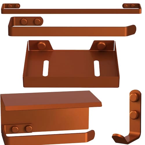 Um banheiro organizado proporciona leveza e praticidade para sua rotina. Para que o banheiro fique em ordem, é necessário o uso de alguns produtos. O kit de Acessórios para Banheiro MAX é super indicado pois contém 5 peças para a harmonização do seu ambiente.O Kit de Acessórios para Banheiro MAX possuem um design clean e sofisticado, suas barras são de alumínio maciço, o porta sabonete é fabricado em aço inox, ambos com acabamento em pintura eletrostática epóxi, garantindo maior durabilidade e resistência, não havendo problemas com ferrugem.BENEFÍCIOSAcabamento PremiumResistente a ÁguaNão EnferrujaTampa de acabamento para esconder as cabeças dos parafusosFuros alinhados com parafusos sextavados, facilitando o acesso da ferramenta, tornando a instalação muito simples e rápidaESPECIFICAÇÕES TÉCNICACor: RosêAcabamento: Pintura Eletrostática Material do Porta Sabonete: Aço InoxMaterial das Outras Peças: Barra Chata de Alumínio MaciçoEspessura da barra chata: 4mmLargura da barra chata:16mmQuantidade de Peças do Kit: 05MEDIDAS.Porta Papel Higiênico: Altura 6.5cm x Profundidade 9cm x Largura 15cmGancho: Altura 6.5cm x Profundidade 5.5cm x Largura 1.6cmPorta Toalha de Banho: Altura 1.6cm x Profundidade 6cm x Largura 44cmPorta Toalha de Rosto: Altura 1.6cm x Profundidade 6cm x Largura 21cmPorta Sabonete: Altura 1.5cm x Profundidade 8cm x Largura 10cmItens Inclusos:01 UN - Porta Papel Higiênico MAX Rosê01 UN - Gancho MAX Rosê01 UN - Porta toalhas de Banho MAX Rosê01 UN - Porta Toalhas de Rosto MAX Rosê01 UN - Porta Sabonete MAX RosêTodos os itens acompanham parafusos, buchas e tampas de acabamento para esconder a cabeça do parafuso. Marca: Não Informado