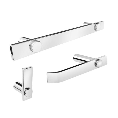 O kit acessórios de banheiro da linha Patmos possui um design atemporal e discreto, são peças de requinte que se destaca com glamour no seu banheiro. ;