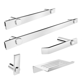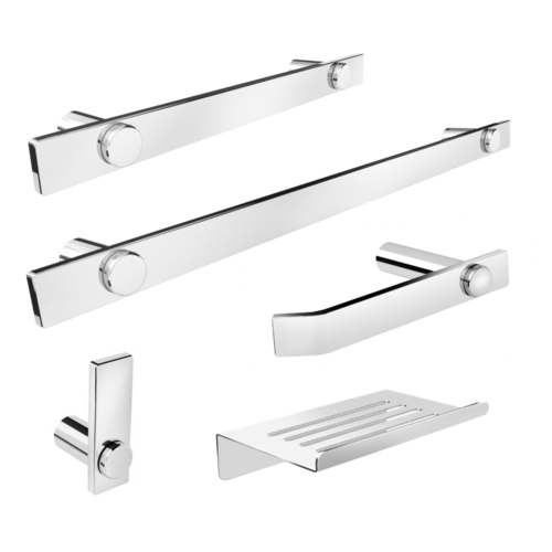 O kit acessórios de banheiro da linha Patmos possui um design atemporal e discreto, são peças de requinte que se destaca com glamour no seu banheiro.