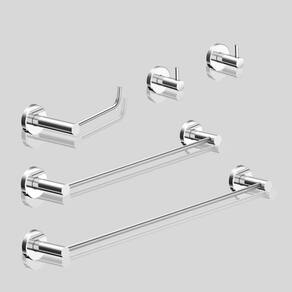 ITENS ENVIADOS: 2 cabides, 1 porta papel higiênico, 1 toalheiro 45cm, 1 toalheiro 55cm, kit de parafusos e manual instrução instalação.