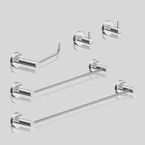 ITENS ENVIADOS: 2 cabides, 1 porta papel higiênico, 1 toalheiro 45cm, 1 toalheiro 55cm, kit de parafusos e manual instrução instalação.