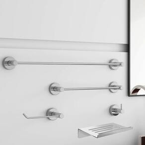 ITENS ENVIADOS: 1 cabide, 1 porta papel higiênico, 1 toalheiro 45cm, 1 toalheiro 55cm, 1 saboneteira, kit de parafusos e manual instrução instalação.