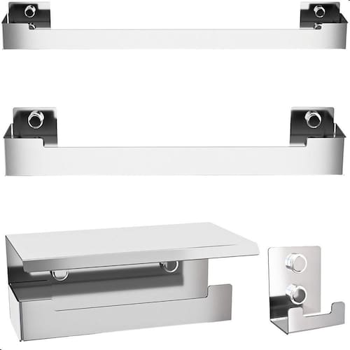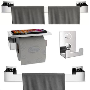 O Kit de Acessórios Para Banheiro tem design minimalista, o preferido dos arquitetos atualmente. O Kit é produzido com aço inoxidável de alta qualidade e conta com um acabamento polido em alto brilho, o que garante maior durabilidade e resistência, além de evitar a ocorrência de oxidação ou ferrugem.
