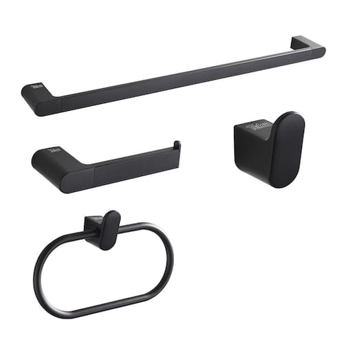 Kit de Acessórios para Banheiro Metal 4 peças Preto Fosco Itens inclusos: 1 Toalheiro 1 Cabideiro 1 Papeleira 1 Porta Toalha 1 kit de instalação 1 manual de instalação e termo de . Cor do produto: Preto Fosco Material: Zinco Acabamento: Fosco Qualidade e Durabilidade: todos os produtos são feitos de materiais resistente e duráveis, e pode suportar um peso equivalente a 30kg. O processo de galvanoplastia espessado torna a superfície do produto mais resistente a corrosão e mais fácil de limpar. O corpo do produtos e feito de metal para reduzir o risco de quebra. Instalação simples: os produtos acompanham os acessórios para a montagem, para uma instalação rápida, fácil e prática. Manutenção: Limpe com pano de microfibra, pano ultra macio e água ou sabão com pH neutro. Limpe no mínimo 1 vez por semana, o acúmulo de sujeita na superfície afeta a vida útil do produto. Não use produtos de limpeza abrasivos, papel, produtos de limpeza a base de acido, ou de polimento. Marca: Não Informado