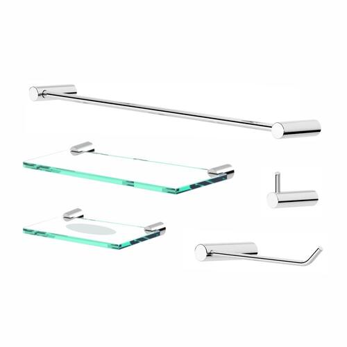 - Adquira estas delicadas peças e comece a desenhar o seu projeto beneficiando a toda família. Agora é só instalar e desfrutar da praticidade do kit 5 peças composto por 1 cabide, 1 papeleira, 1 saboneteira, 1 porta toalha 50cm, 1 porta shampoo 30cm que você comprou na Grego Metal - sua melhor escolha.