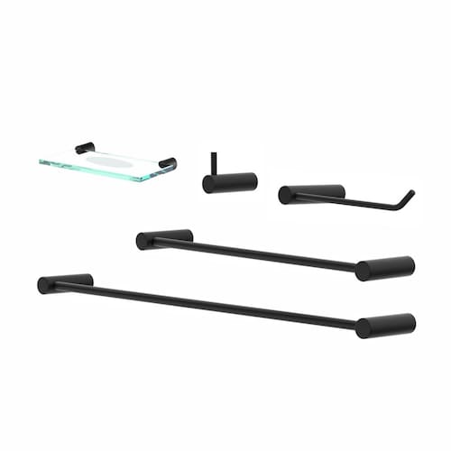 - 2110or - 5 pecas - 01 Cabide, 01 Papeleira, 01 Porta Toalha 50cm, 01 Saboneteira, 01 Porta Shampoo