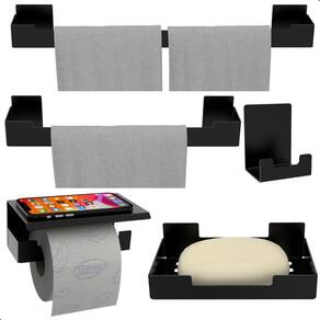 O Kit Acessórios Para Banheiro Adesivo foi projetado para quem não quer furar a parede e busca por qualidade na fixação e boa aderência em ambientes molhados.