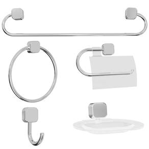 Acompanha o produto: • 1x Cabide Simples 1x Saboneteira 1x Papeleira com Tampa 1x Porta Toalha Argola 1x Porta Toalha Bastão