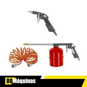 O Air Kit é formado por cinco peças: ferramenta para pintura, ferramenta para pulverização, ferramenta para limpeza, calibrador de pneus com manômetro e mangueira em espiral de 3 metros.