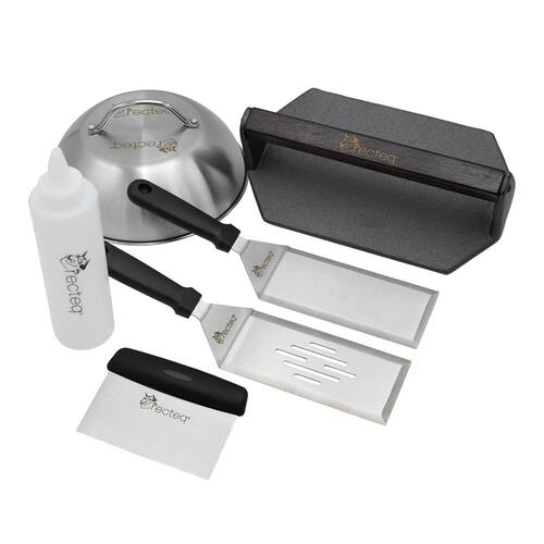 - kit de acessórios para chapa recteq SmokEstone 600 | Raspador de chapa, garrafa de compressão, prensa de grelha de ferro fundido, cúpula de chapa e duas espátulas de aço inoxidável