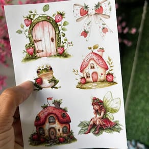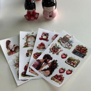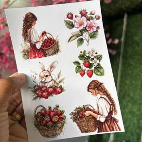 Este kit especial contém 4 cartelas de adesivos com temática de morango, repletas de ilustrações delicadas, femininas e inspiradas no estilo cottagecore e devocional. Cada adesivo é cortado digitalmente com precisão, garantindo bordas limpas, cores vibrantes e um acabamento impecável.