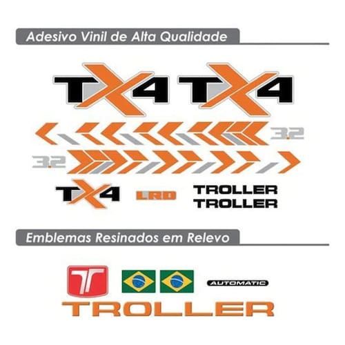 Kit de adesivos troller tx4 2020/2021 padrão de fábrica tx4l Kit de adesivos troller tx4 20202021 padrão de fábrica tx4l Características: Adesivo impressão uv resistente a sol e chuva. Marca: orajet Vantagens: Vinil do tipo permanente com mais desempenho e estabilidade. Fabricante de renome internacional; Durabilidade de em média até 4 anos após aplicação; Resistência térmica, química, à umidade e à corrosão; Adesivo calandrado de fácil aplicação e alto grau de aderência. Adquira adesivos de qualidade Adesivo impresso com tinta uv, resistente a sol e chuva Aceita verniz automotivo exceto adesivos resinados Material próprio para linha automotiva Itens inclusos: 13- unidades de adesivos Ref: 1518 Info: Características: Alta qualidade e durabilidade. Material adesivo autocolante. Fácil aplicação. Suporta aplicação de verniz automotivo quando o adesivo não for resinado Produzido com recorte eletrônico. Ótima aderência. Resistente a chuva e raios uv. Não perde coloração. / entrega: Despachamos em até 24 horas úteis após confirmação de pagamento. Embalagem com proteção para transporte. Instalação: Limpe cuidadosamente as peças onde os adesivos serão aplicados, retirando todos os resíduos poeira, gordura, óleo, desengripante etc... Não utilizar materiais abrasivos sobre os adesivos. Após aplicação a cola leva até 48 horas para finalizar sua cura total. A spts produz adesivos automotivos seguindo medidas e cores compatíveis com o mercado. Trabalhamos com materiais de ponta, garantindo assim sua qualidade e também o melhor custo benefício para você. Possuímos adesivos para toda a linha automotiva, motos, caminhões, máquinas pesadas, máquinas agrícolas e também itens de personalização e resinados. Marca: Não Informado