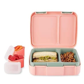 Kit alimentação skip hop bento box embale porções perfeitas para crianças com nossa resistente e super fofa lancheira bento. Uma solução completa para o almoço, até os comedores mais exigentes da família vão adorar mastigar tudo o que você embalar na bandeja dividida e recipientes separados com tampas. Uma vedação segura ajuda a evitar bagunça, enquanto as travas para crianças são fáceis para as mãos pequenas abrirem e fecharem sozinhas. Melhor ainda pode ser lavado na lava-louças, então a limpeza é fácil.